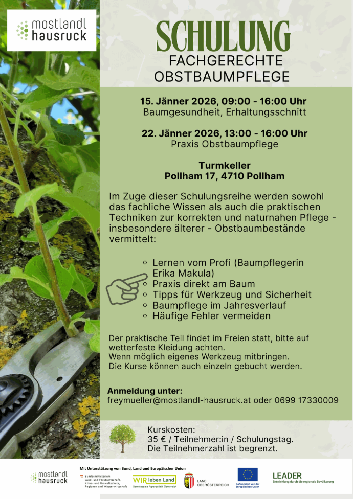 Projekte können bis zum 10. Februar 2026 über die digitale Förderplattform eAMA, eingereicht werden (nach Absprache mit dem LEADER-Büro).