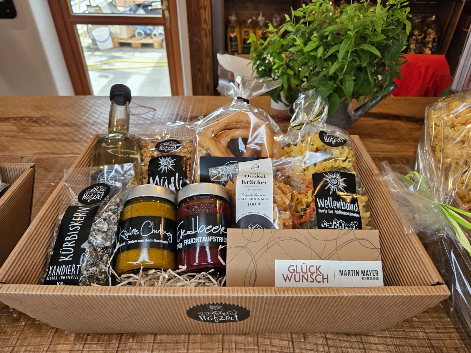 Geschenkkörbe telefonisch, per Mail oder ab Hof entgegen genommen. - Hofzeit, Winkling 16, Hofkirchen an der Trattnach - Hofzeit Geschenkkörbe & Geschenkboxen: für Firmen und Privatkunden